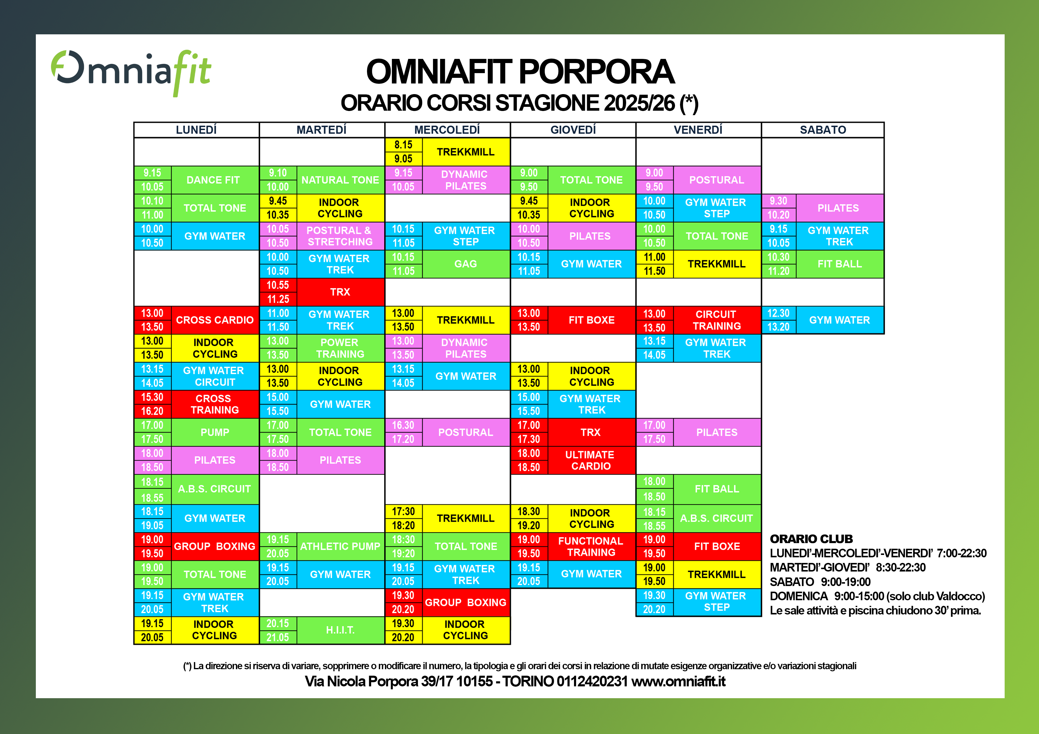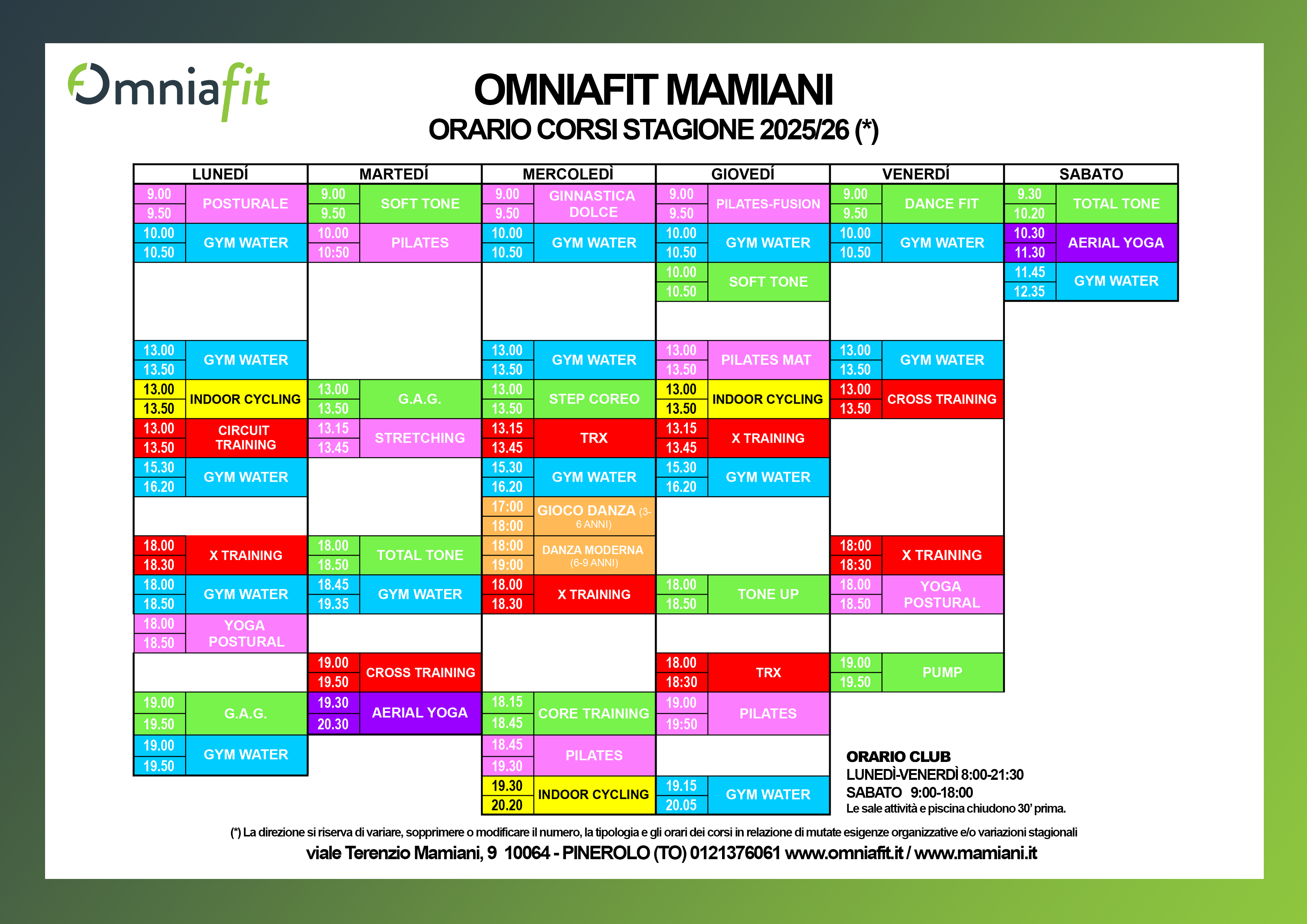 Ti presentiamo gli orari di apertura ed il calendario corsi per l'estate 2025.